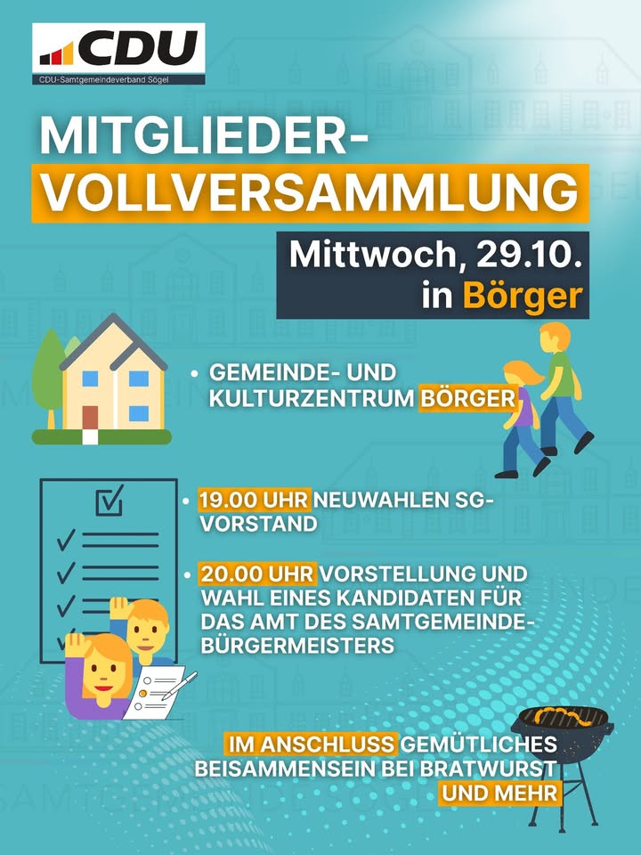 Der CDU-Samtgemeindeverband Sögel beabsichtigt, für die Wahl zur/zum hauptamtlichen Samtgemeindebürgermeister(in) eine(n) eigene(n) Bewerber(in) aufzustellen.